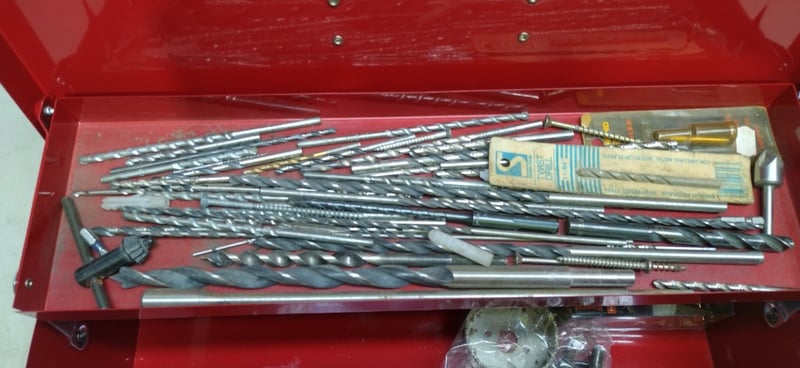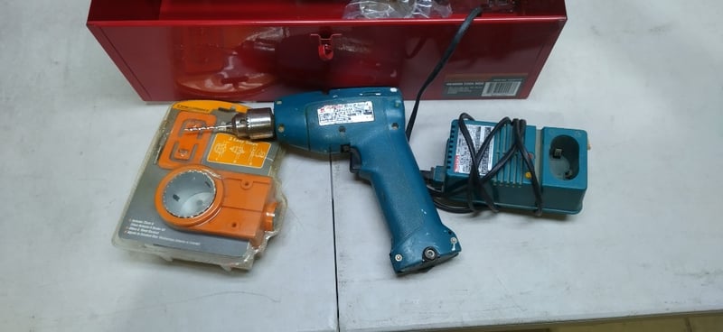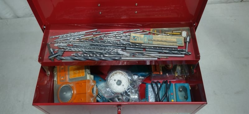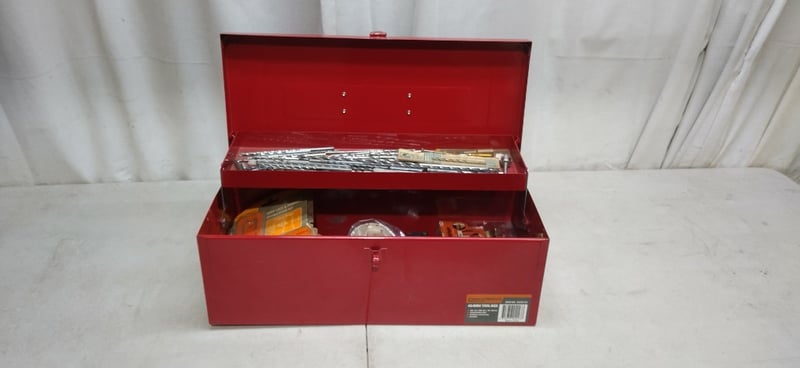 Red Tool Box Including Drill Bits, Cordless Drill & Charger