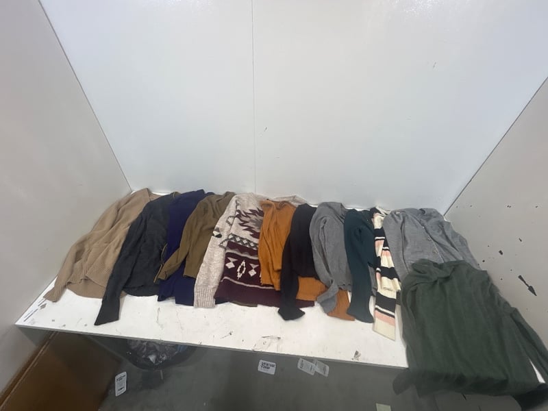 RRP: $434, cardigan/sweaters,assorted styles, brands/colours/size, S/MQuantity: 12, sold as lot