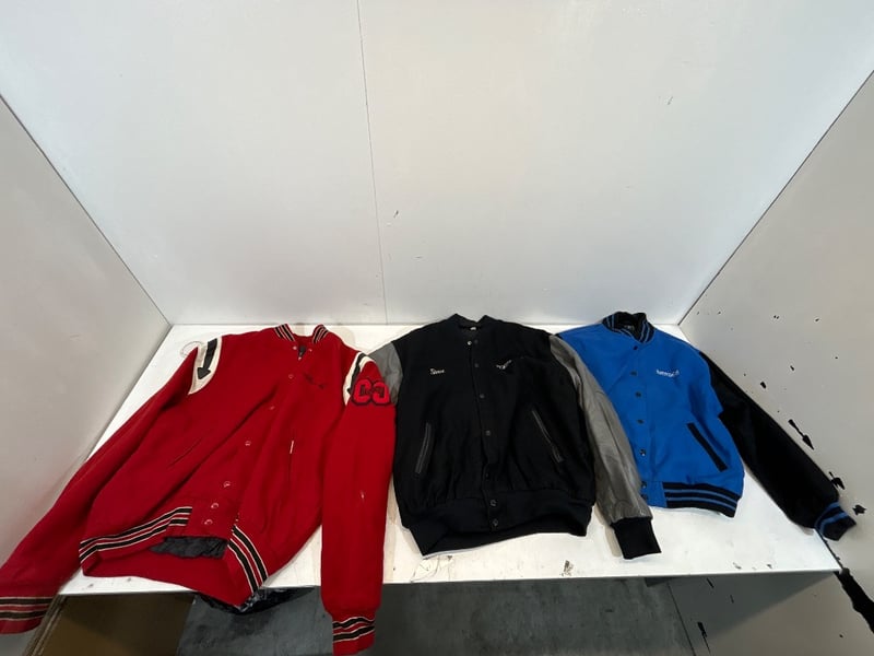 RRP: $455, jackets Letterman, assorted styles, brands/colour/size, L/XLQuantity: 3, sold as lot