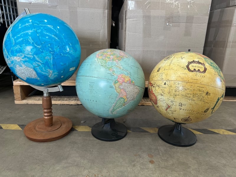World globes, assorted sizes/ styles, wood/ plastic typessold as lot
