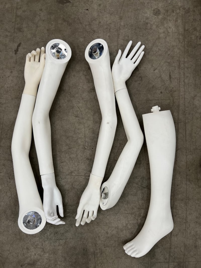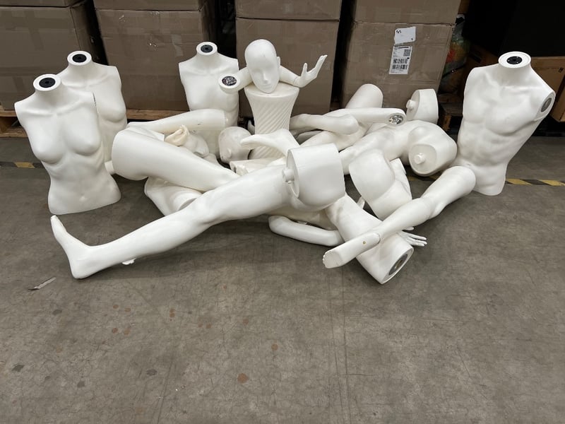 Assorted mannequin parts, includes; legs, torsos, arms, head etc Sold as lot