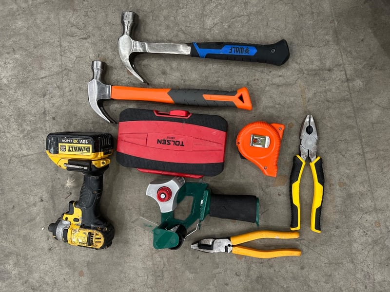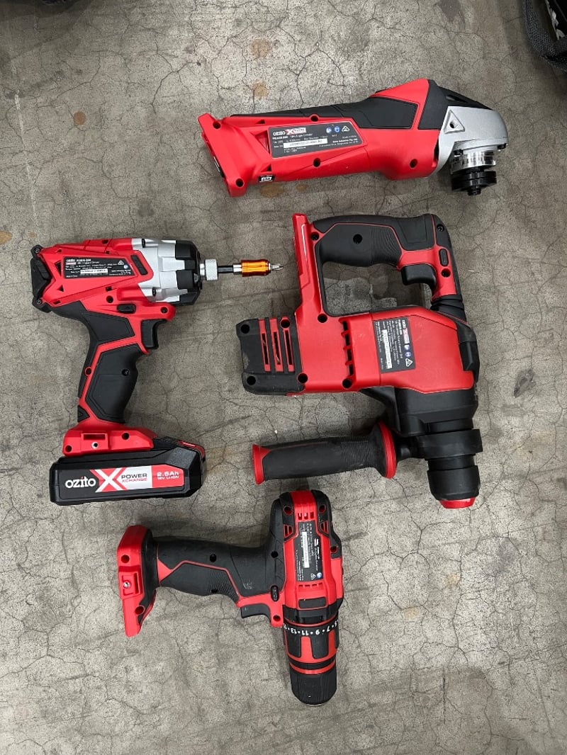 Assorted equipment/ tools, includes drills, hammer, angle grinder, screw drivers etcSold as lot