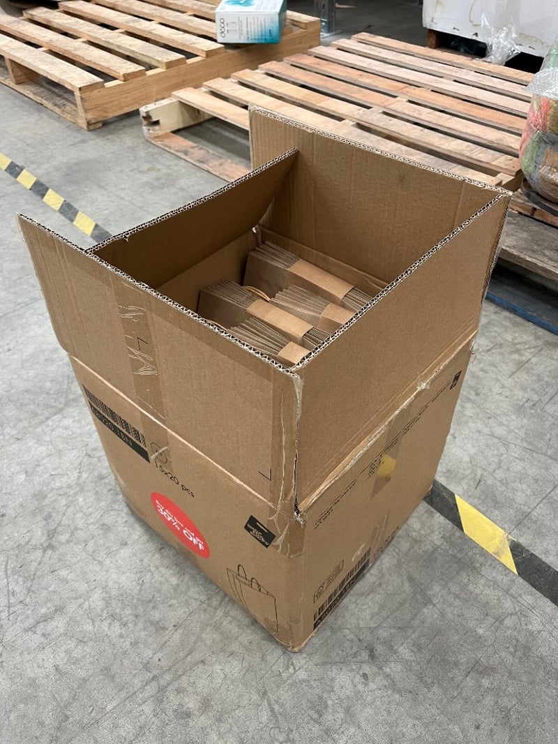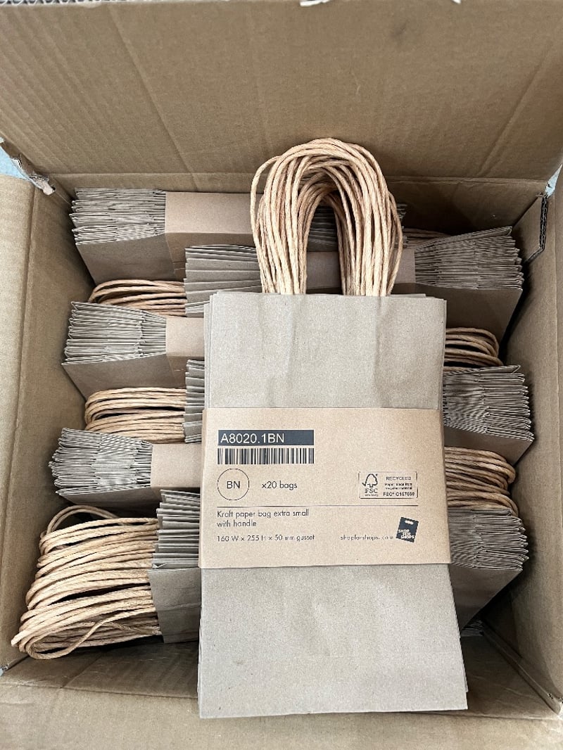 Paper bags, extra small with handle, x15 bundles of 20 to box, sold as lot