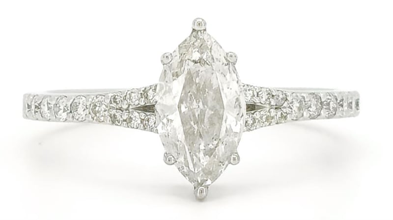 9CT WHITE GOLD DIAMOND DRESS RING Features Centre, One Marquise Brilliant Cut Diamond (1.01Ct, H Colour, I3 Clarity), Claw Set, With 24 Round Brilliant Cut Diamonds (0.25Ct Tdw, I-J Colour, Si2-I2 Clarity), Bead Set. Ring Size O. Jewellery Valuations Provided By A Third Party Professional Not Directly Associated With Lloyds Auctions at AUD $15400This Insurance Valuation has been provided by a registered Jewellery Valuer and is intended for insurance purposes only. The valuation amount has no bearing on the auction value of the item. Any questions regarding the valuation should be directed to the issuing Valuer (refer to contact details on the certificate) as Lloyds have no association or relationship with the Valuer or the valuation amount contained within the valuation. 0587812+1722
