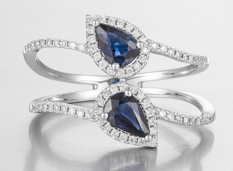 14CT WHITE GOLD AUSTRALIAN SAPPHIRE AND DIAMOND DRESS RING Features Centre, 2 Pear Cut, Deep Blue Black Australian Sapphires (0.81Ct Tsw, Moderately Included), Claw Set, With 76 Round Brilliant Cut Diamonds (0.22Ct Tdw, F-G Colour, Vs2 Clarity), Bead Set. Ring Size O. Jewellery Valuations Provided By A Third Party Professional Not Directly Associated With Lloyds Auctions at AUD $12000This Insurance Valuation has been provided by a registered Jewellery Valuer and is intended for insurance purposes only. The valuation amount has no bearing on the auction value of the item. Any questions regarding the valuation should be directed to the issuing Valuer (refer to contact details on the certificate) as Lloyds have no association or relationship with the Valuer or the valuation amount contained within the valuation. 0587812+1726