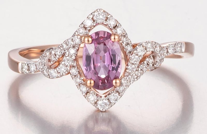 14CT ROSE GOLD PINK CEYLON SAPPHIRE AND DIAMOND HALO RING Features Centre, One Oval Cut, Moderate Pink Ceylon Sapphire (0.50Ct, Slightly Included), Claw Set, With 46 Round Brilliant Cut Diamonds (0.20Ct Tdw, G-H Colour, Vs1-Vs2 Clarity), Pip-Claw Set. Ring Size O. Jewellery Valuations Provided By A Third Party Professional Not Directly Associated With Lloyds Auctions at AUD $12200This Insurance Valuation has been provided by a registered Jewellery Valuer and is intended for insurance purposes only. The valuation amount has no bearing on the auction value of the item. Any questions regarding the valuation should be directed to the issuing Valuer (refer to contact details on the certificate) as Lloyds have no association or relationship with the Valuer or the valuation amount contained within the valuation. 0587812+1729