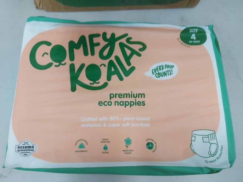 Nappies, Comfy Koalas, Size 4, 10-15kg, 80% Plant Based MaterialsSold As Lot