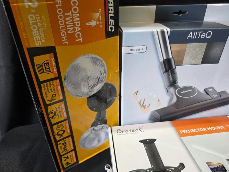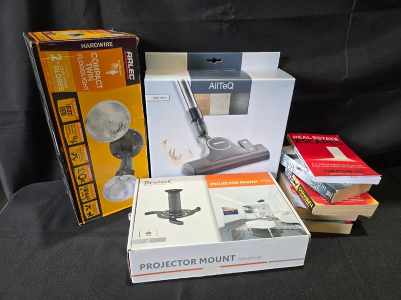 Homewares includes projector mount, trinket floodlight, books and vacuum headSold as lot