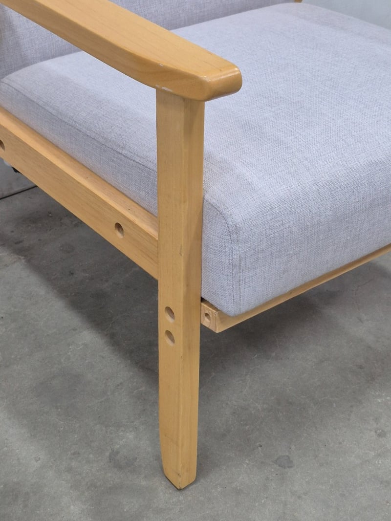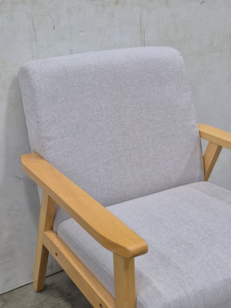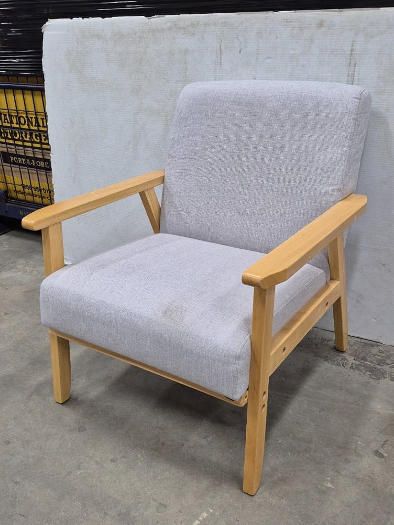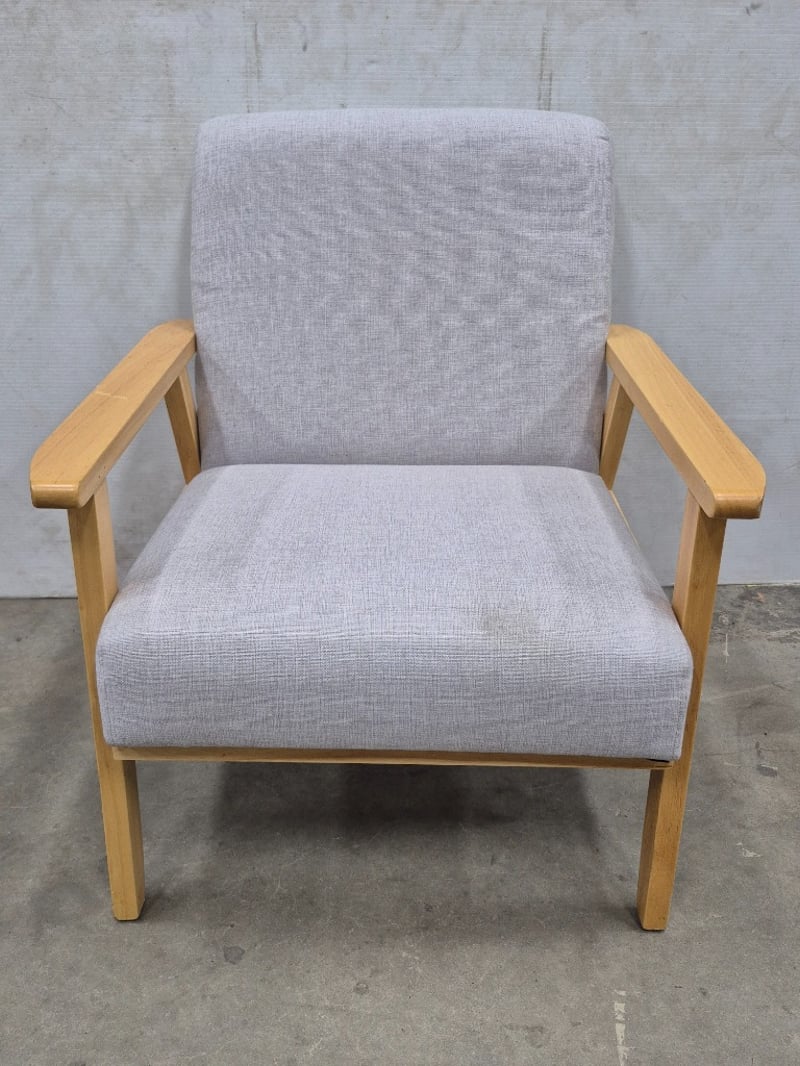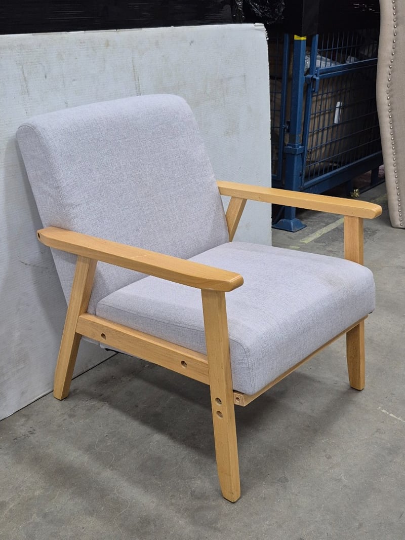 Armchair, Contemporary Styled, Polyster Linen Upholstery, Natural Wood Styled Frame, Dimensions: 65cm x 64cm x 72cm