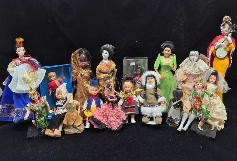INTERNATIONAL DOLL COLLECTION WITH CULTURAL COSTUMES AND ACCESSORIESCondition: Good - Refer To Images5C587808+3