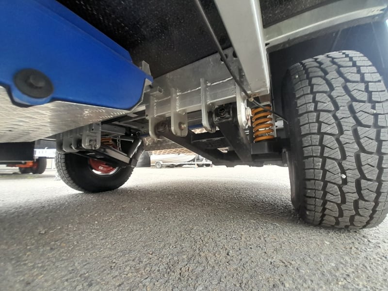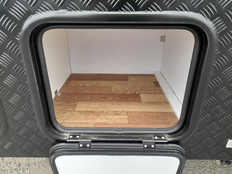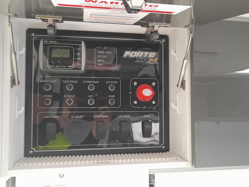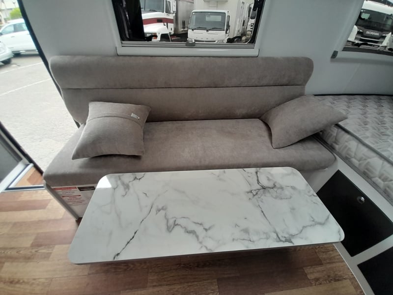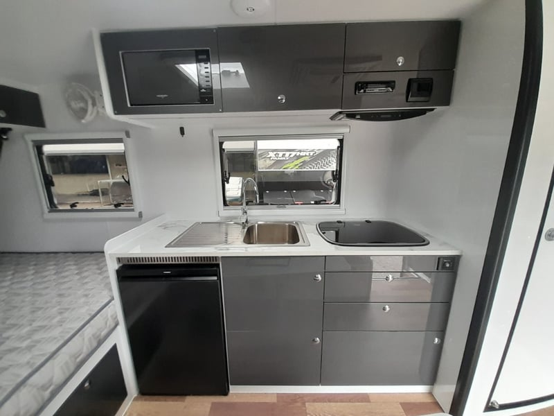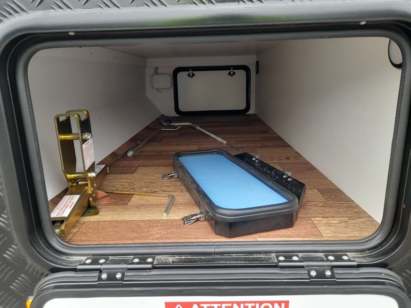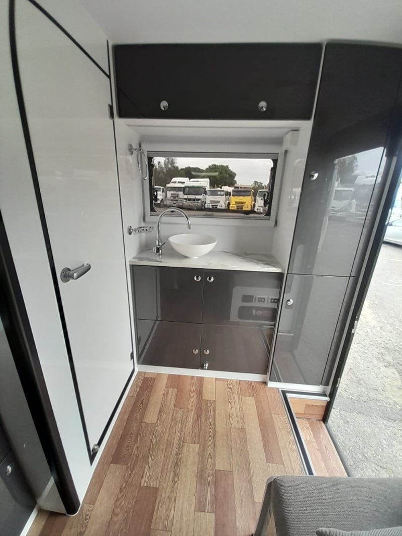 Description: 2 berth, queen size bed and lounge area, internal shower and toilet, 200Ah lithium battery, internal kitchen, 130L fridge, microwave, 350 watts solar power, air con, 1600 watts Pure sine wave Inverter, projecta, electronics, blu tooth stereo, LED lighting,