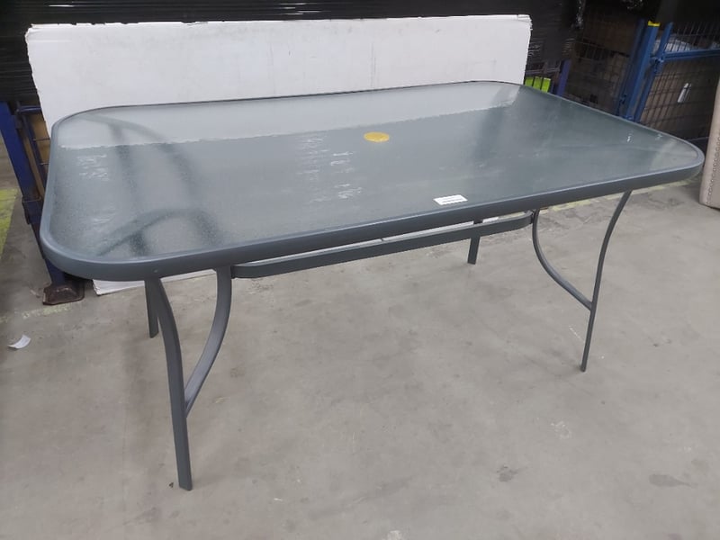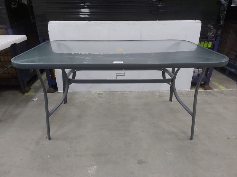 Outdoor Dining Table, Metal Frame, Glass TopDimensions: H 72cm W 150cm D 90cm