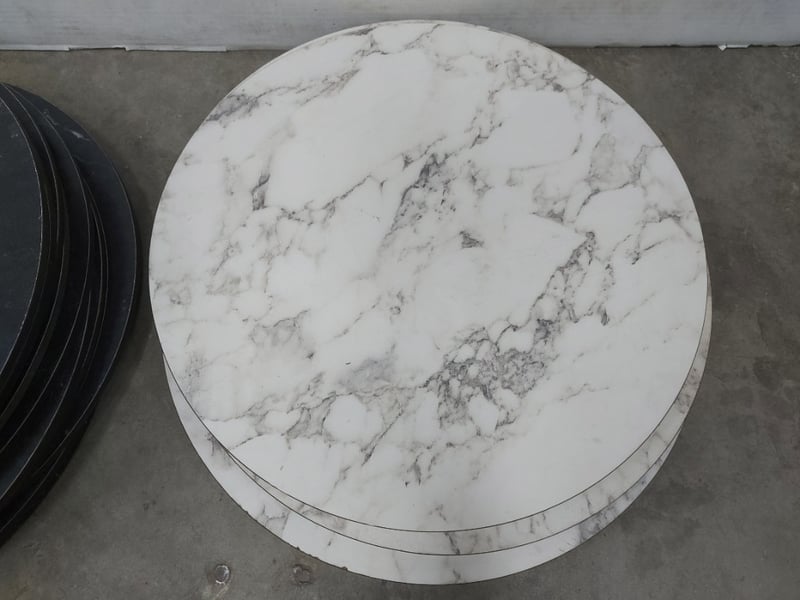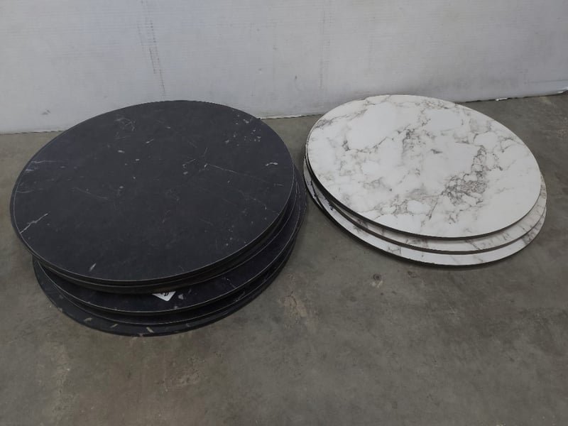 Side Table Tops, Black & White Marble Styled Finish, Qty: 17Dimensions/each: H 1cm W 47cm D 47cm Sold As Lot