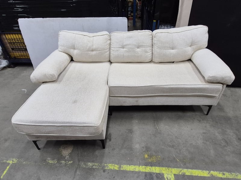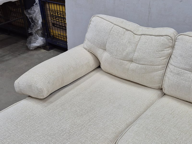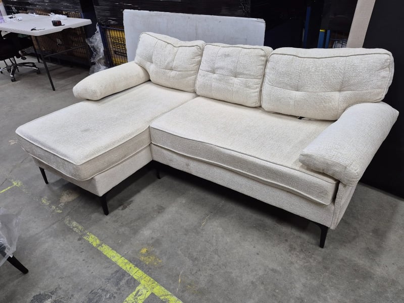 3-Seater Lounge, Casual or Contemporary Style, Cream White Woven Upholstery, Metal LegsDimensions: 210cm x 130cm x 90cm