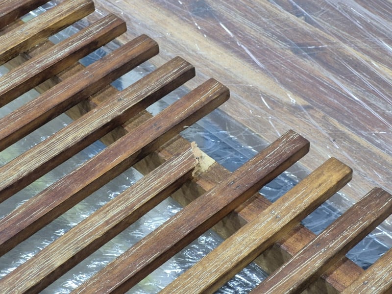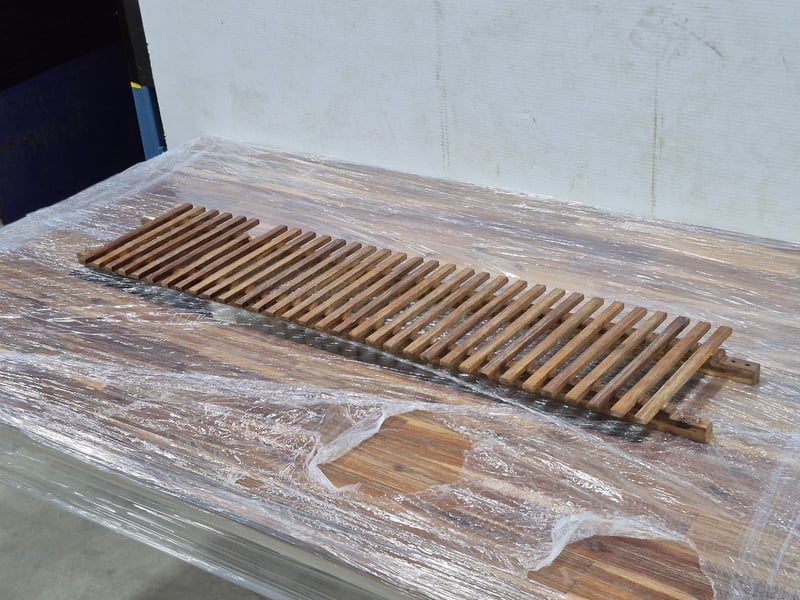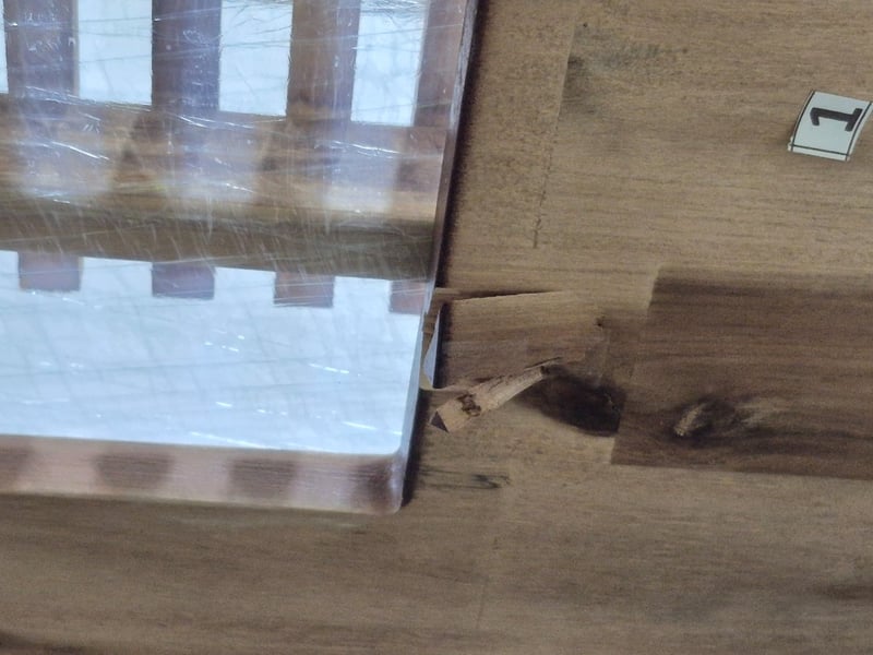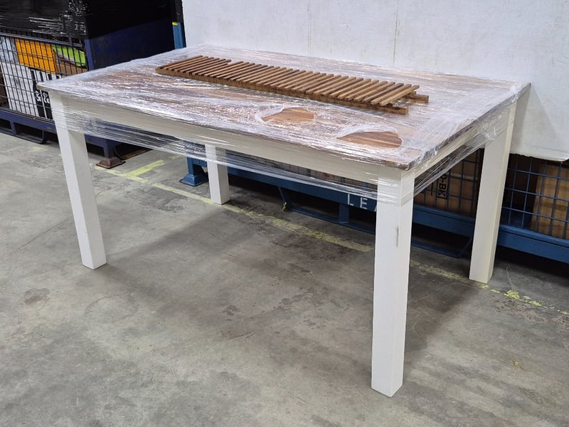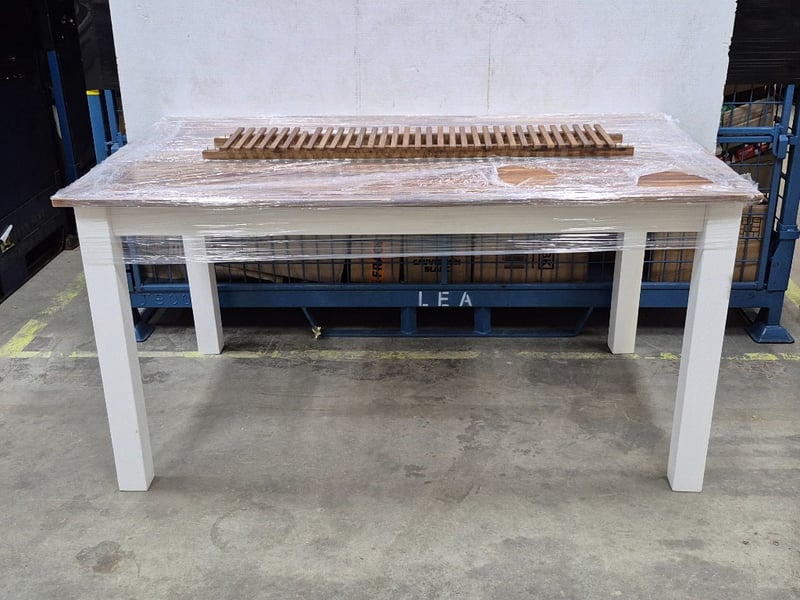 Rustic Dining Table, Washed Wood Finish, Grated Pattern, Note: Damaged, Centre Grate Piece has snapped off.Dimensions: 90cm x 150cm x 76cm