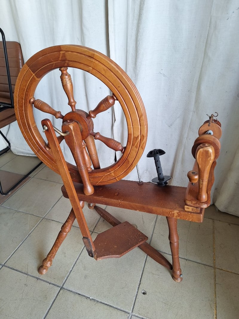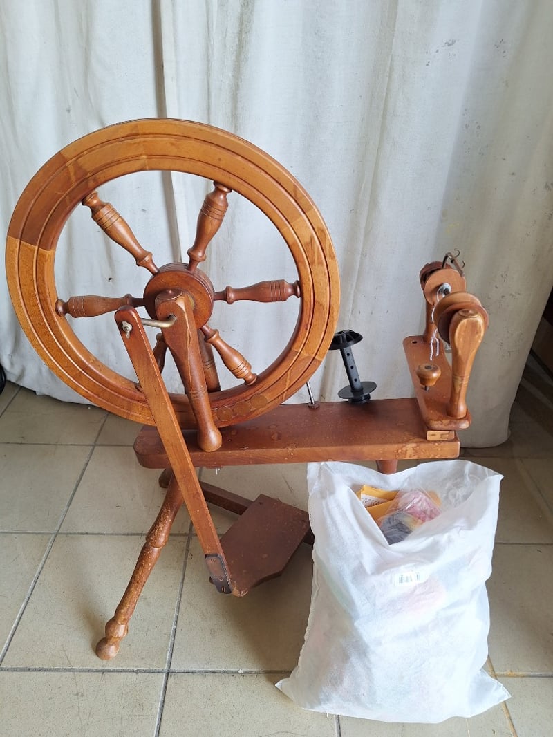 Ashford Traditional Spinning Wheel With Wool, Timber Style, Brown FinishDimensions H:92cm W:50cm D:66cm