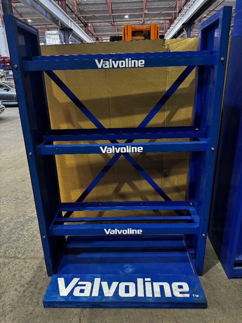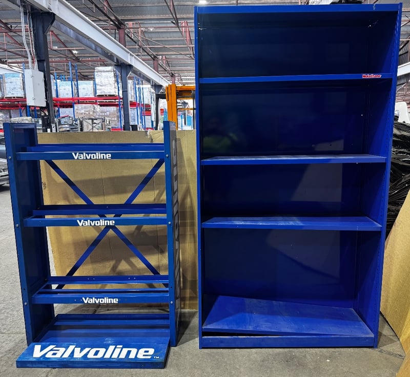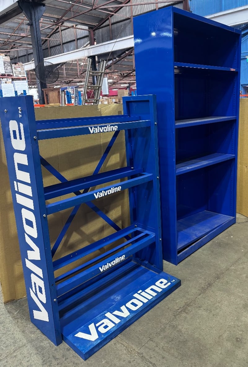 Shelving, 2x Valvoline heavy-duty shelvingSold as lotDimensions: Shelf 1: H: 155cm W: 145cm D: 35cm