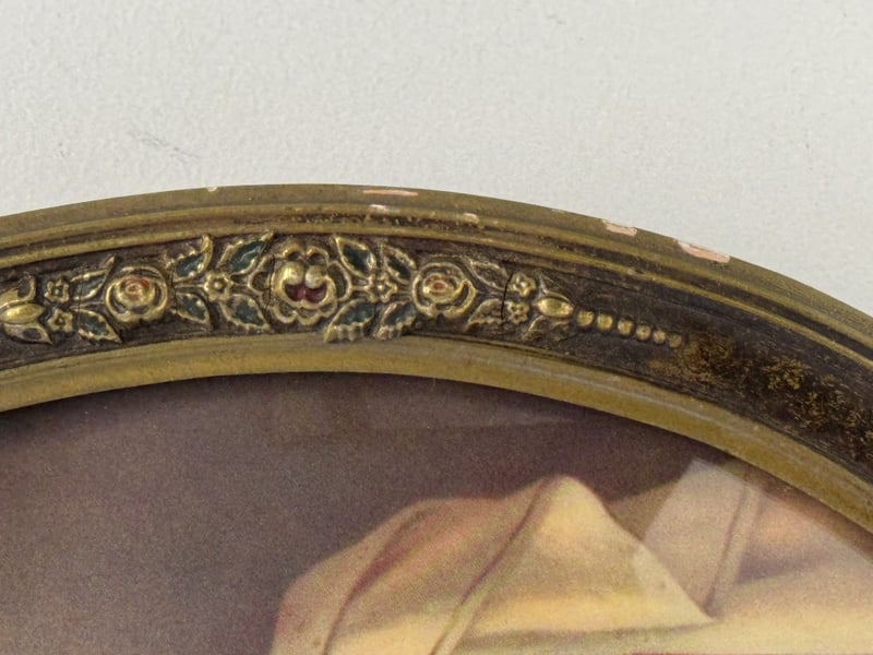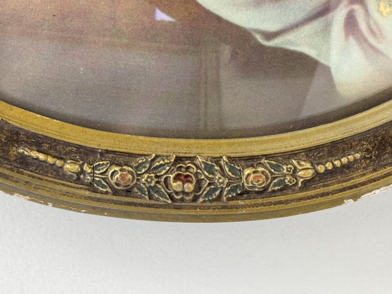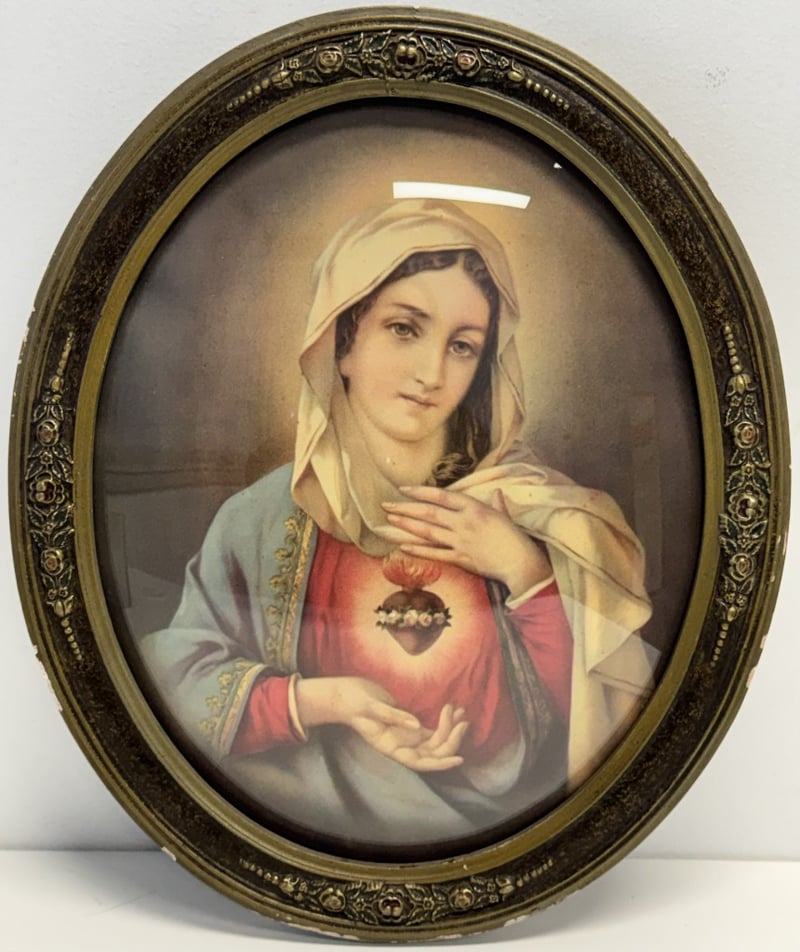 1947 LITHOGRAPH PRINT DEPICTING THE IMMACULATE HEART OF MARY IN AN ORNATE, OVAL-SHAPED FRAME488444+2