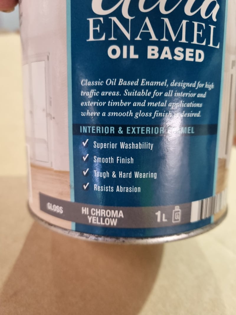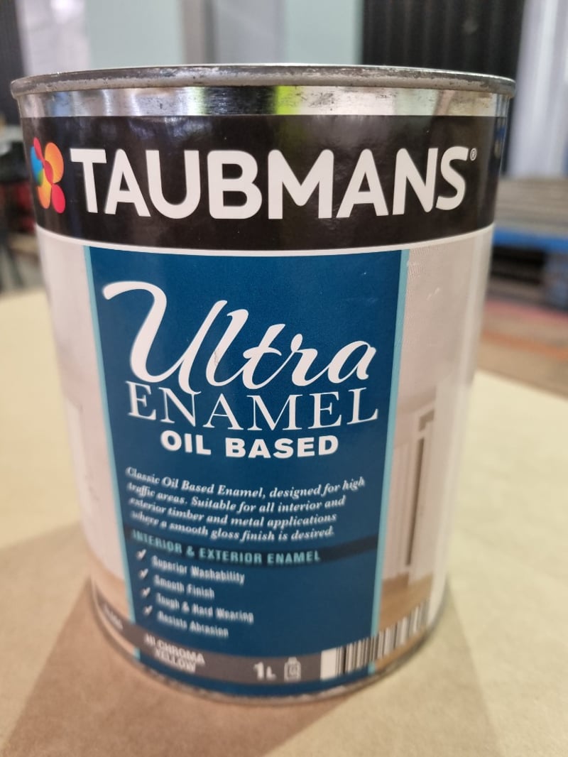 Taubmans,ultra Enamel oil based, Hi Chroma Yellow ,1L Bid per litre, must take 10L