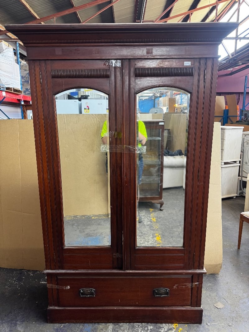 Wardrobe, timber style mirror wardrobe