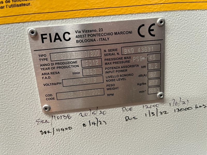 2012 FIAC Silver 10 IDE Air Compressor - 300L