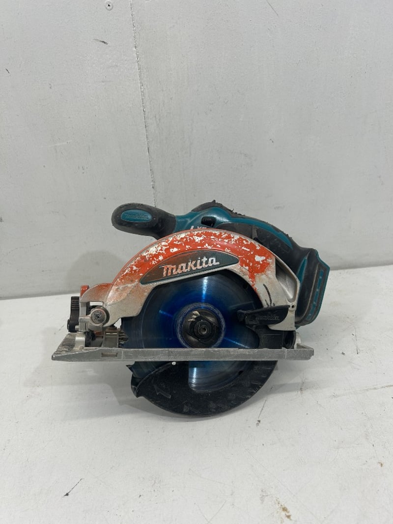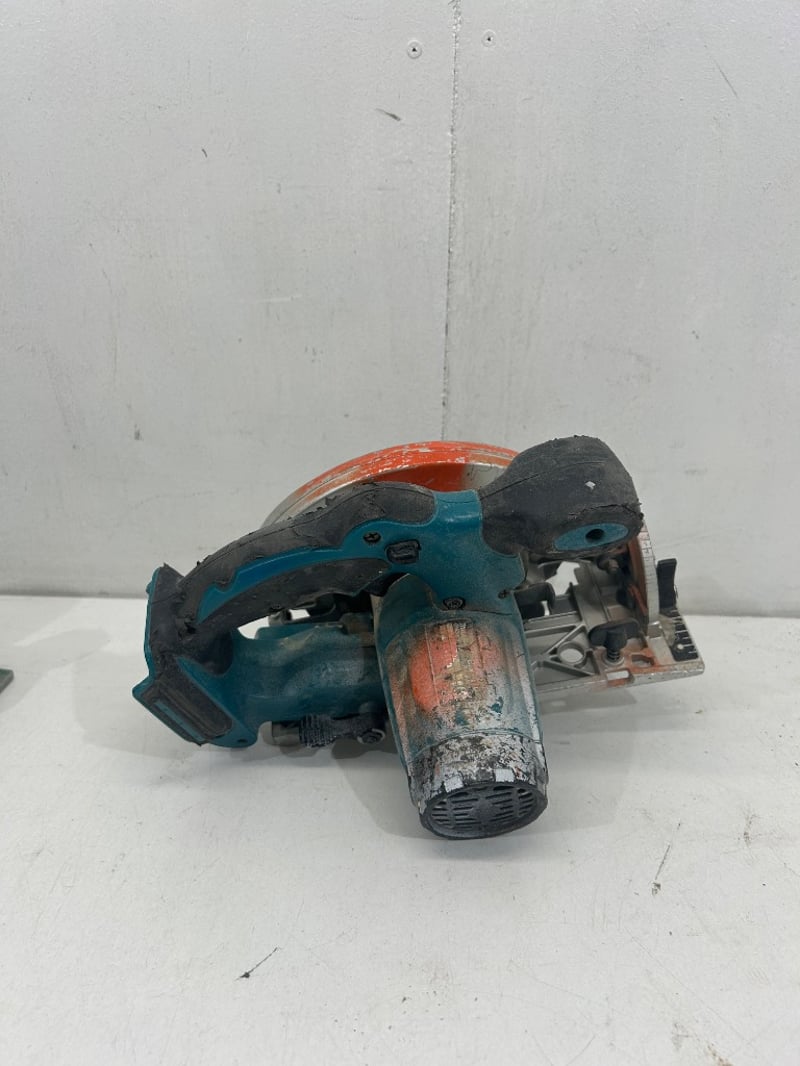 Makita cordless circular saw (model DSS611Z )fitted with a circular cutting blade, alloy base plate, blade guard, and rear handle grip. is in working condition. - Skin Only