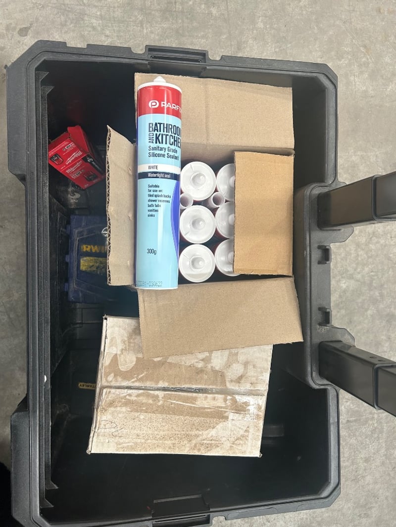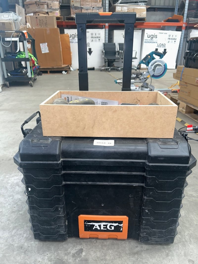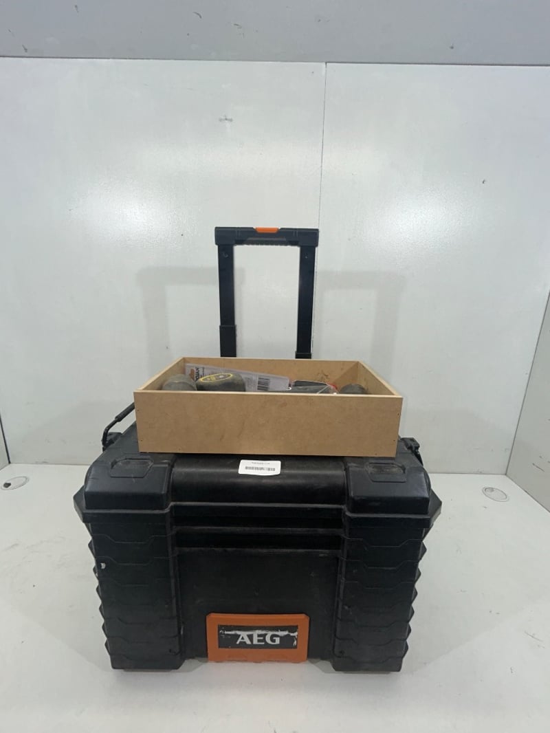 assorted lots include mixed screws, bolts, fixings, and fasteners in various sizes and finishes,AEG rolling tool box,Sold as lot