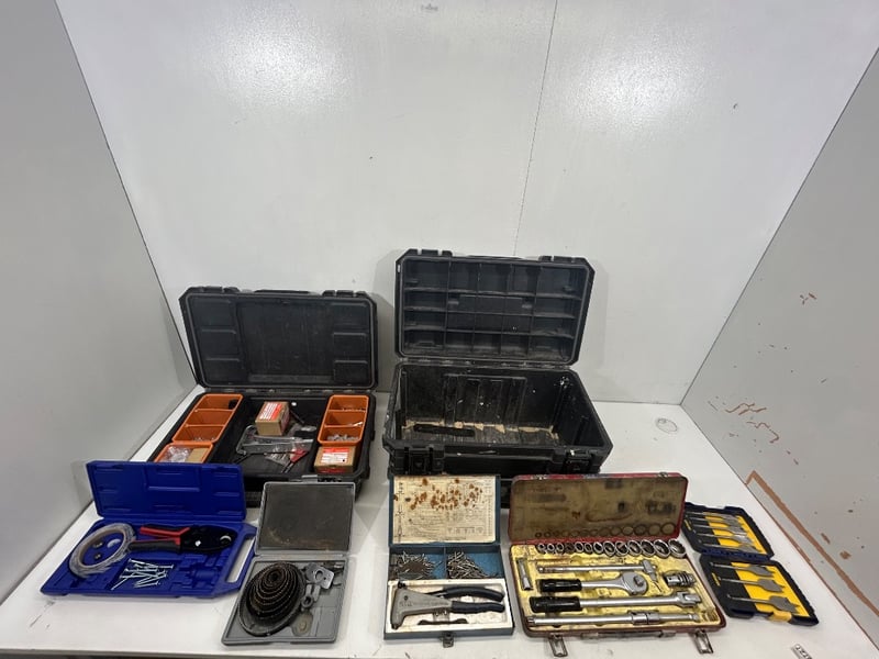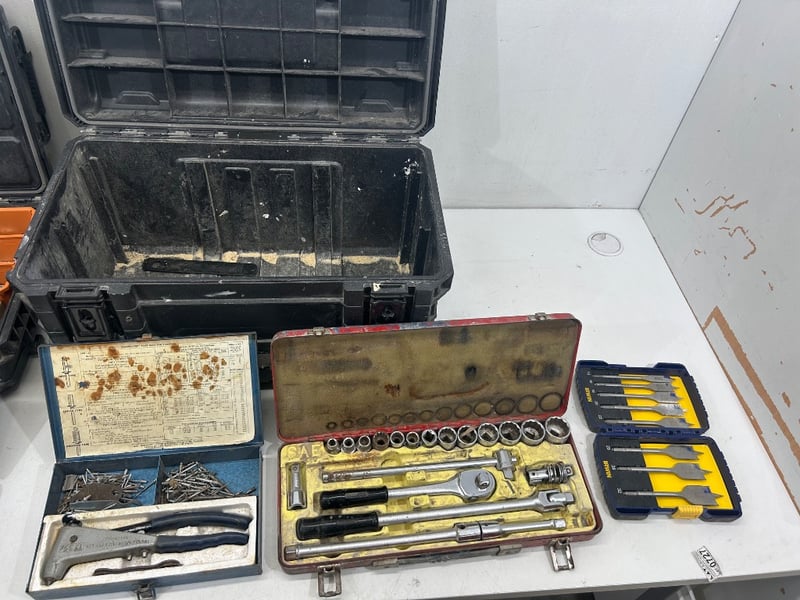 Hand Tools,Hand tools including Socket sets, drill bits, Tool box etc, Models including AEG, Irwin etc. Sold as lot.