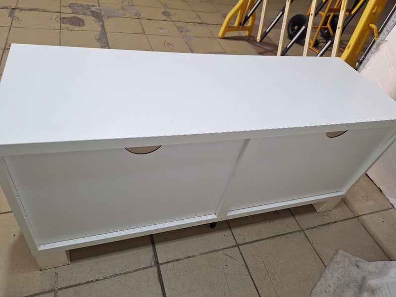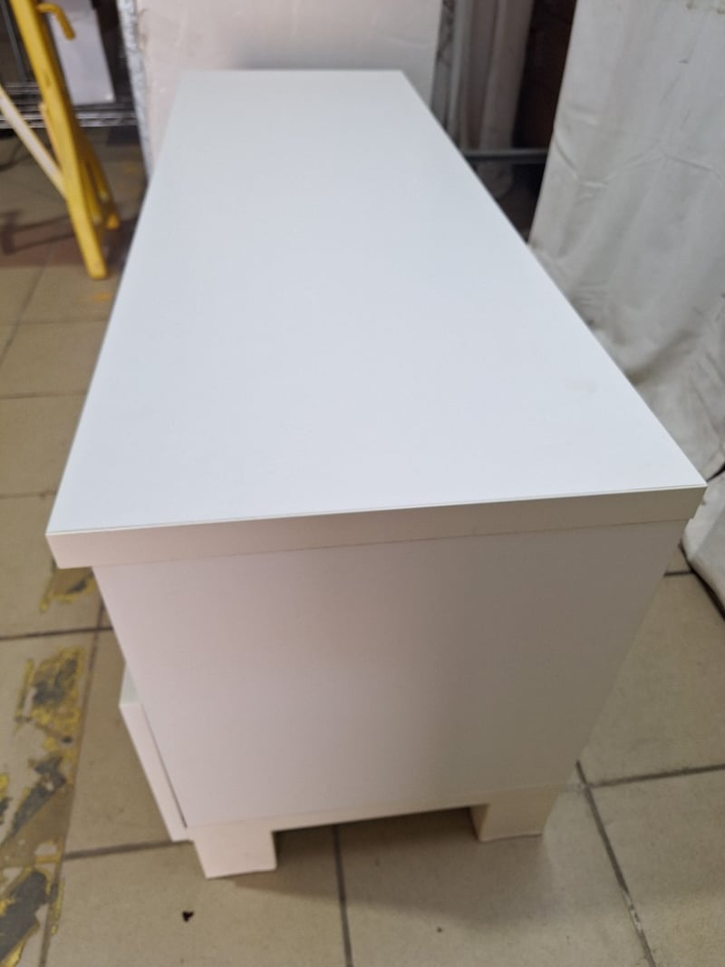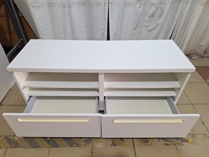Entertainment Unit With Drawers, Timber Style, White FinishDimensions H:55cm W:120cm D:42cm