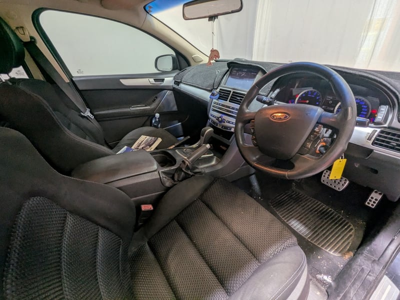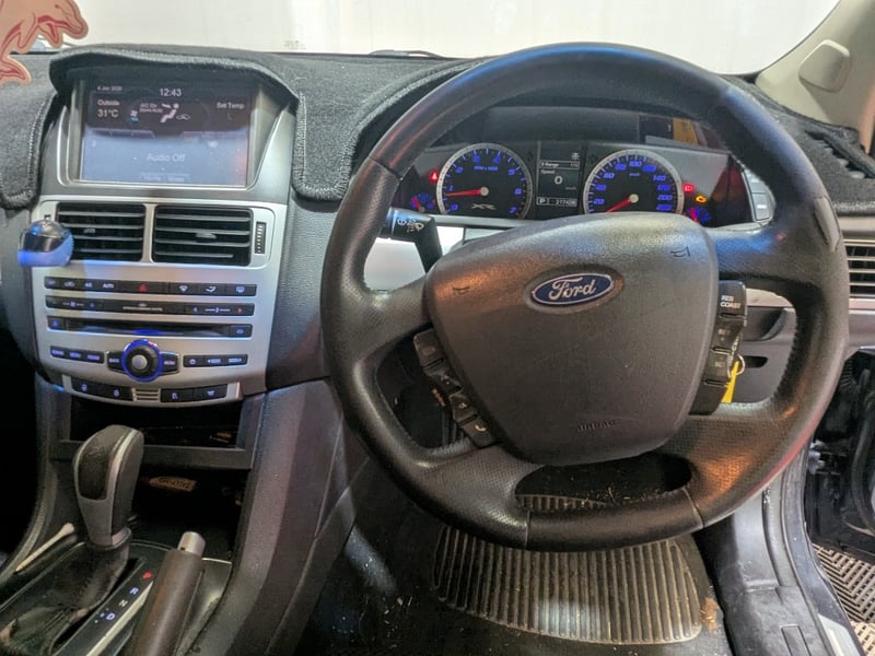 Multi-function steering wheel with cruise and media controls, cupholders, storage compartments, Vanity mirrors front passenger and driver, electric side mirrors, Bluetooth, map lights, dash mat, original Ford XR dash sears and head unit and more. Interior plastics have scuffs, scratches and marks, drivers side internal door hamdle in broken, leathe on steering wheel, shift gator and handbrake gator are torn or flacking as is the centre console lid, tow bar ball is missing as is spare wheel and jack, plastic trim in boot is cracked. Clear coat in bonnet, roof and boot lid have faded, headlight lenses are yellowed, front bumper and bonnet have stone chips.Rims have minor damage.