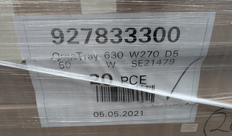 Hettich OrgaTray 630, 270mm x 550mm White (9278333).Quantity per pallet.