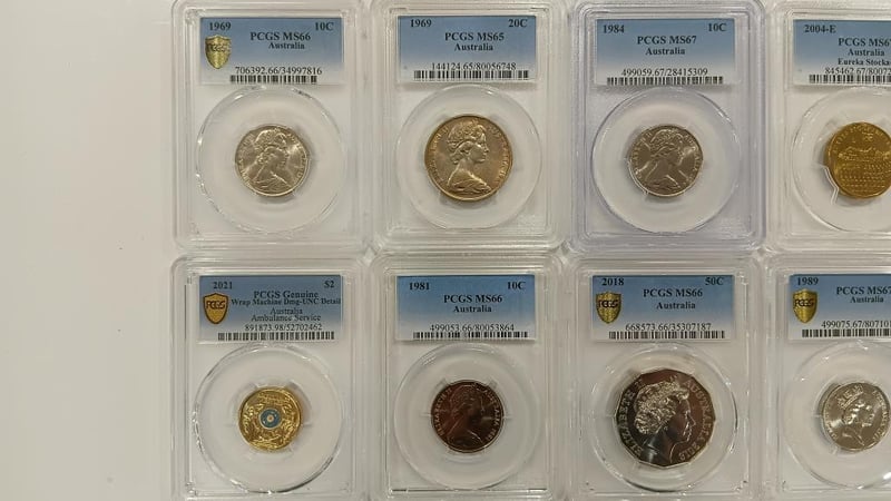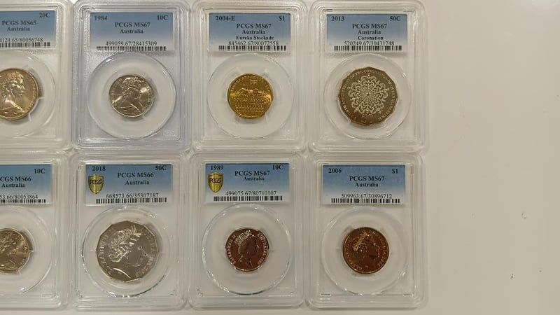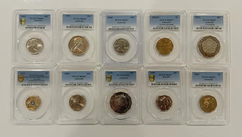 PCGS AUSTRALIAN 1969-2018 COINS 10 Coin Collection, Coloured $2 + Commemorative Coins High Grade Au To Ms67 Gem Unc 488447+8