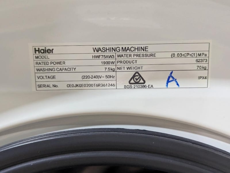 RRP: $749 Haier 7.5kg Front Load Washer, Model No: HWF75AW3, Serial: CEOJKGE0200T6R361246