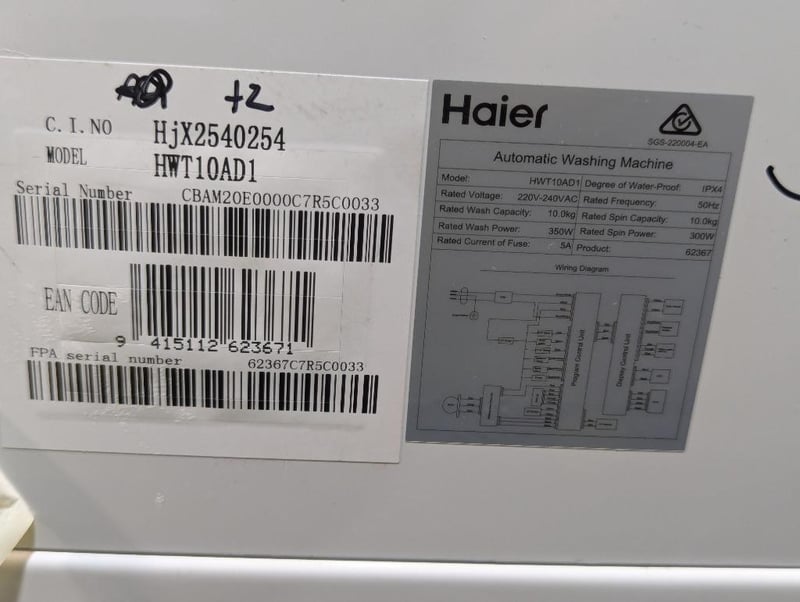 RRP: $1199 Haier 10kg 600 Series Top Loader Washing Machine Model No: HWT10AD1 Serial: CBAM20E0000C7R5C0033.