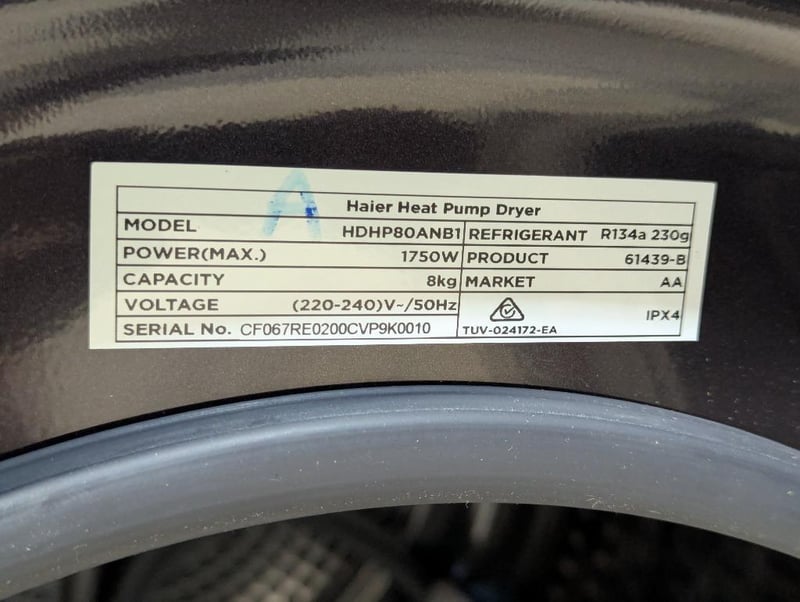 RRP $1299 Haier 8kg Heat Pump DryerModel No: HDHP80ANB1, Serial: CF067RE0200CVP9K0010