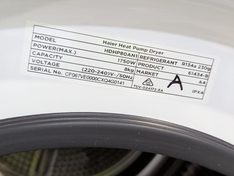 RRP: $999, Haier 8kg 300 Series Heat Pump Dryer Model No. HDHP80AW1, Serial: CF067VE0000CXQ4G0141
