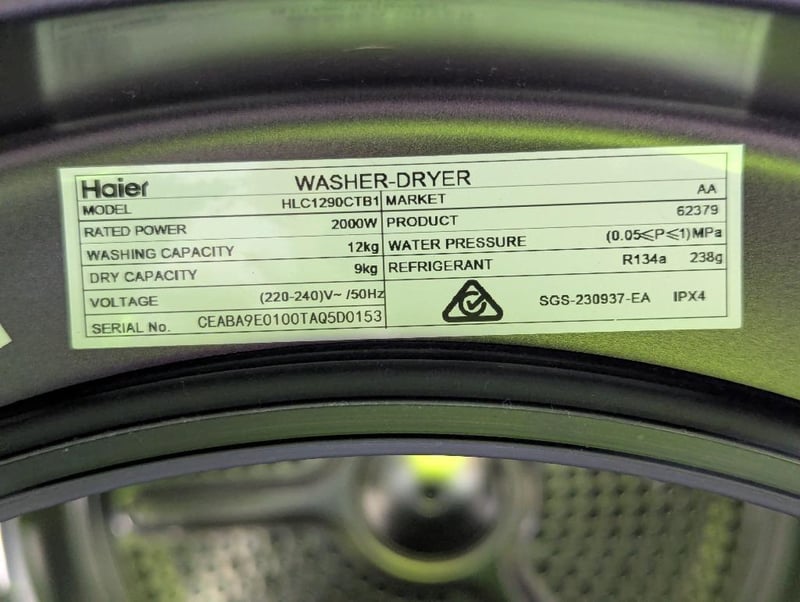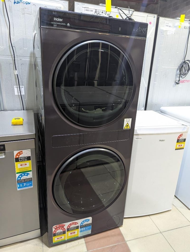RRP $3999 Haier 12kg Washer and 9kg Heat Pump Dryer Laundry Centre Dark Finish Model No :HLC1290CTB1 Serial: CEABA9E0100TAQ5D0153