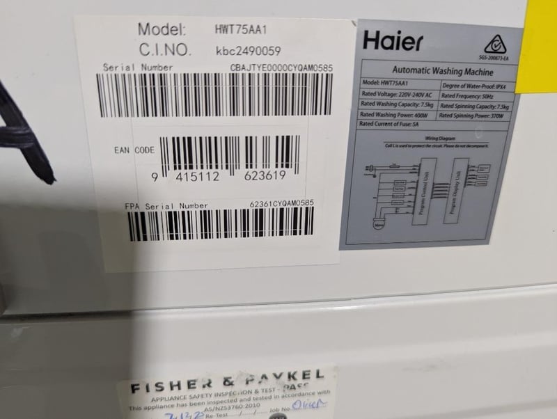 RRP: $749, Haier 7.5kg 300 Series Top Loader Washing Machine, Model: HWT75AA1, S/N: CBAJTYE0000CYQAM0585