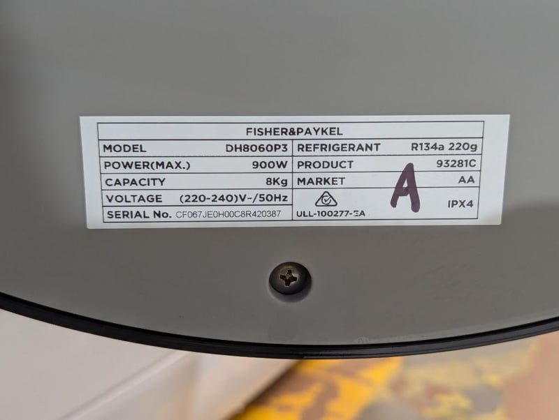 RRP: $1999, Fisher and Paykel 8kg Series 5 Heat Pump Dryer, Model: DH8060P3, S/N: CF067JE0H00C8R420387
