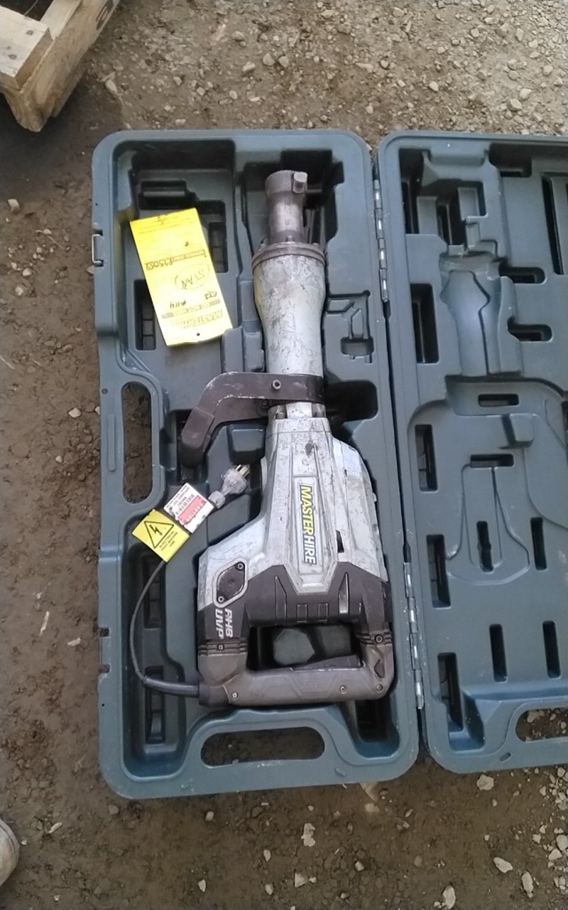 Description, large electric 240 volt jackhammer, unknown condition parts missing, to plastic carry case