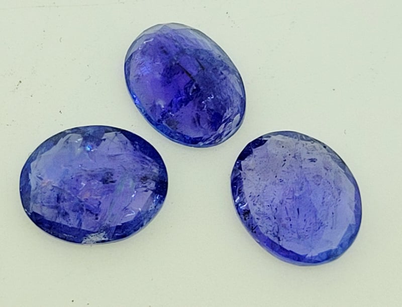3X 2.85CT NATURAL BLUE TANZANITE GEMSTONES TRANSPARENT TREATMENT – NO TREATMENT DETECTED Oval Shaped , Faceted Cut , Colour Blue , No Treatment Detected, 8.55Ct Tcw 488436+33