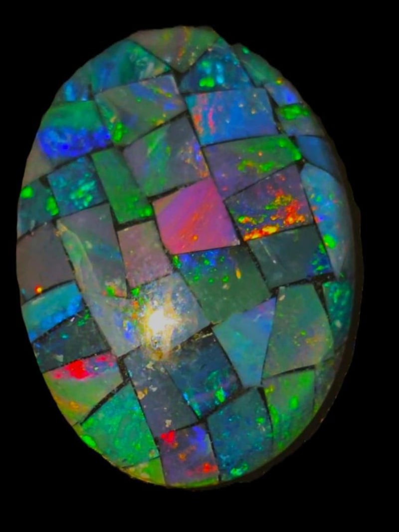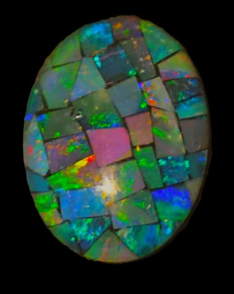 7.7 CARATS GENUINE COOBER PEDY MOSAIC OPAL TRIPLET. Dimensions: 18X13x5mms Nice Big Stone Ready To Set. Condition: Good - Refer Images 0586378+52Vault