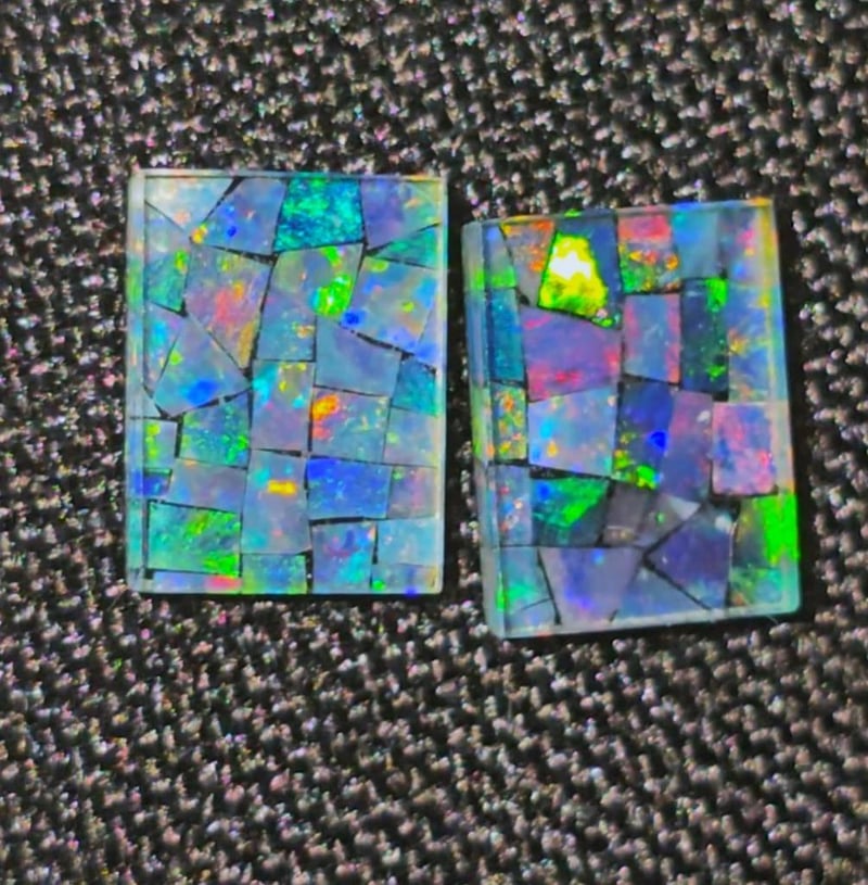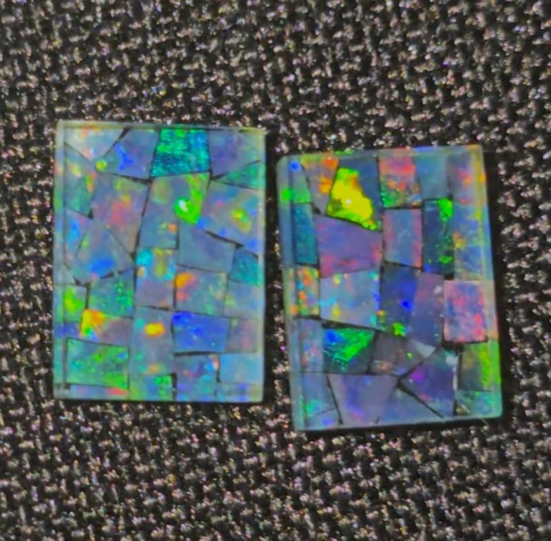 2.4 CARATS COOBER PEDY MOSAIC DOUBLETS. Dimensions: 8x6x2mms Condition: Good - Refer Images 0586378+78Vault