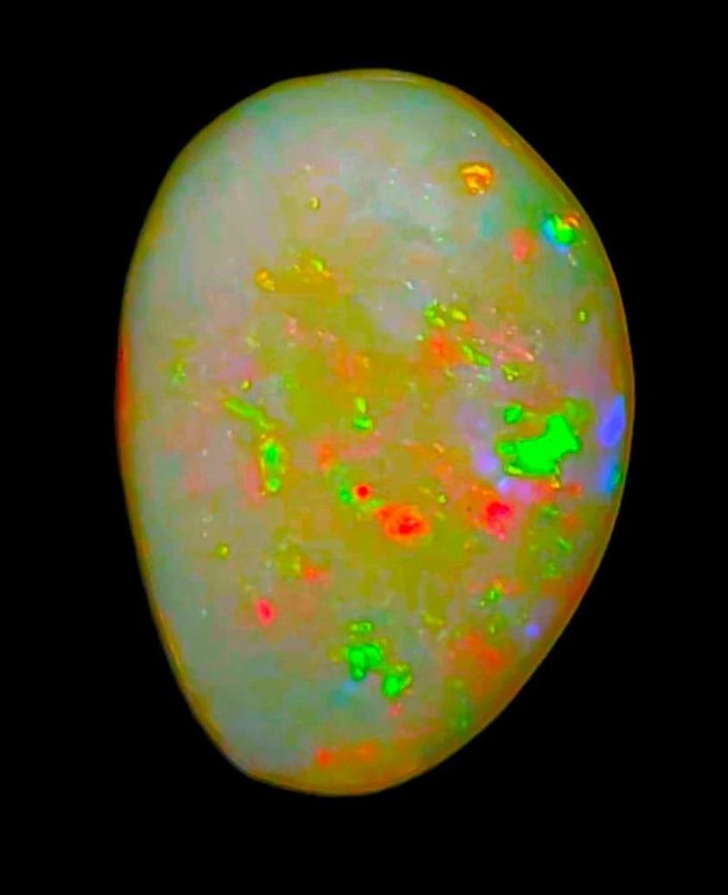 Smooth Free Form Oval Cut With Pinks Yellows Golds Greens And Blues.