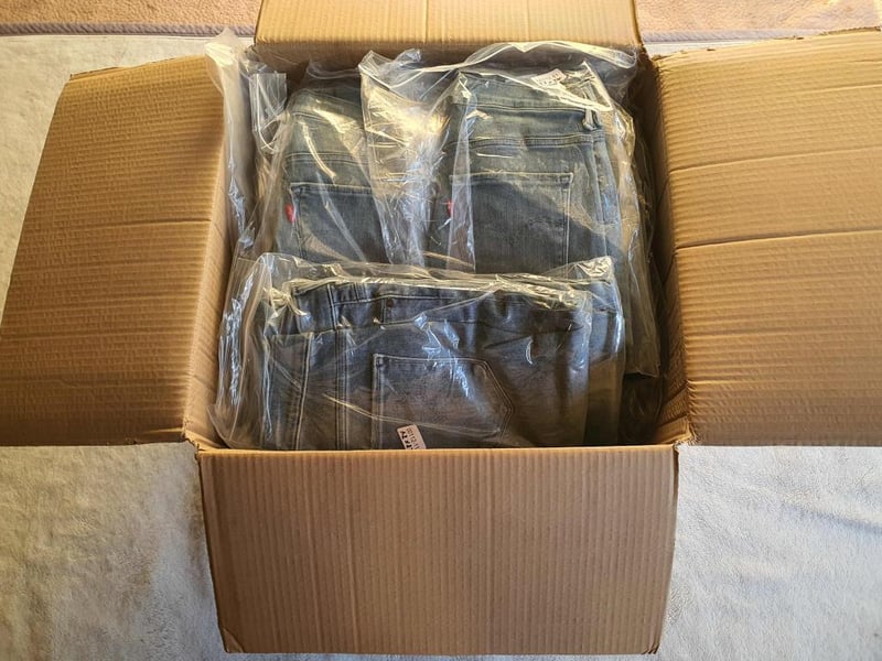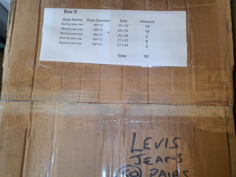 Box of 50 brand new womens Levis Jeans individually bagged. See image for sizes and styles.