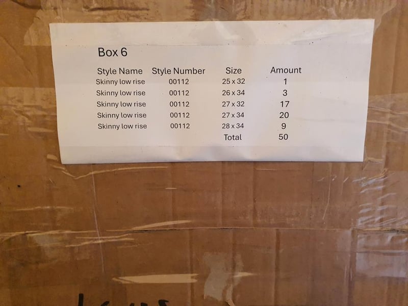 Box of 50 brand new womens Levis Jeans individually bagged. See image for sizes and styles.