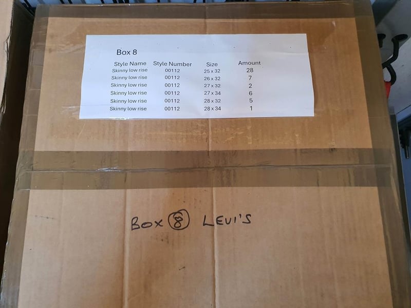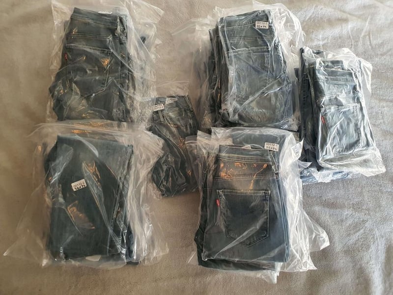Box of 50 brand new womens Levis Jeans individually bagged. See image for sizes and styles.