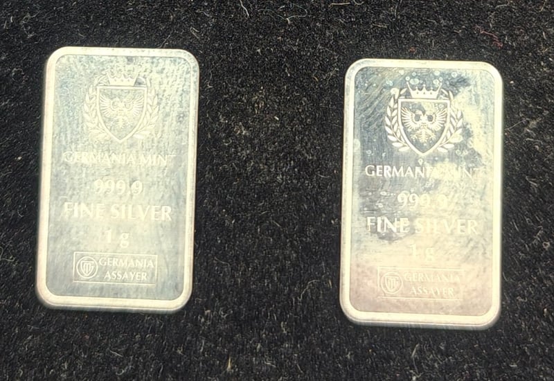 2 X Germania Mint 1G Silver Bar, 999.9 Fine Silver