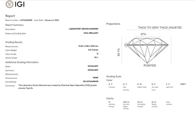 4.51 CARATS D/VS1 LAB GROWN DIAMOND - IGI CERTIFIED