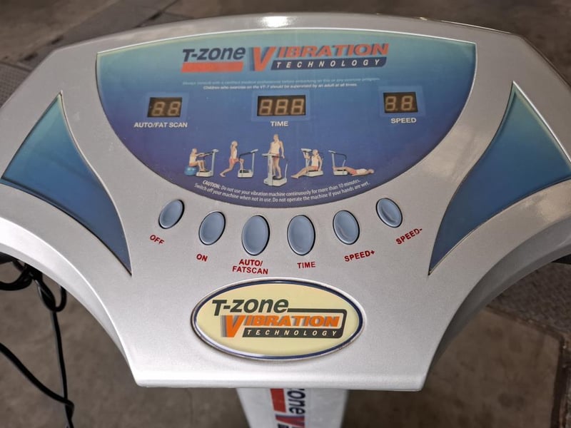 T-Zone Whole Body Vibration machine. Dimensions:70 cm( W) x 80 cm (D) 120x cm (H) Note: Inspection Recommended